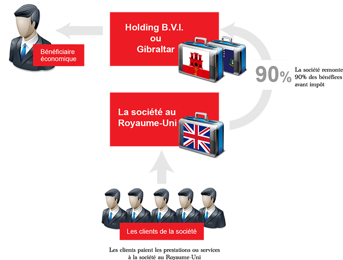 Income is then transferred to the offshore company, and therefore taxed according to the legislation of the country of destination. It is important to clarify that the UK onshore company may not exercise an activity in the United Kingdom, failing which its revenues would be subject to British tax law.